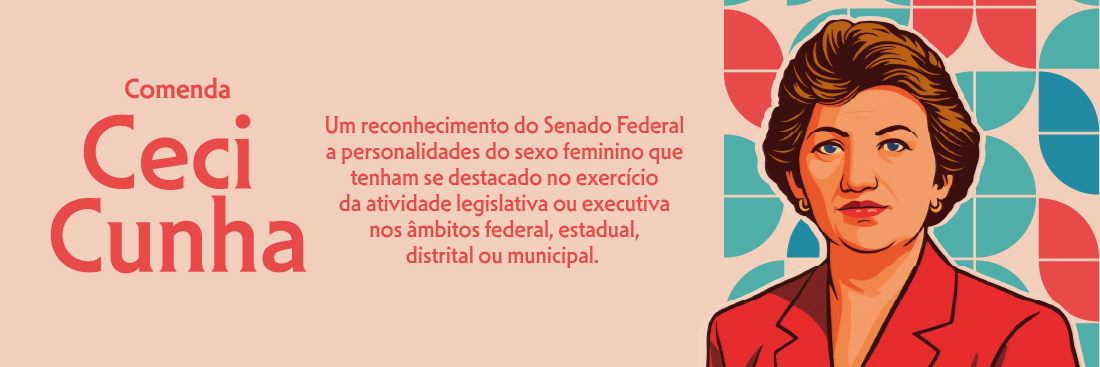 A Comenda Ceci Cunha é destinada a agraciar personalidades do sexo feminino que tenham se destacado no exercício da atividade legislativa ou executiva nos âmbitos federal, estadual, distrital ou municipal.